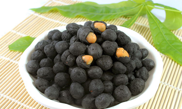 研磨成粉后,将饱满浑圆的北港精选花生,裹上纳米萃取的竹山竹炭粉加以低温酥炸,形成了一颗颗如黑钻一般的花生。